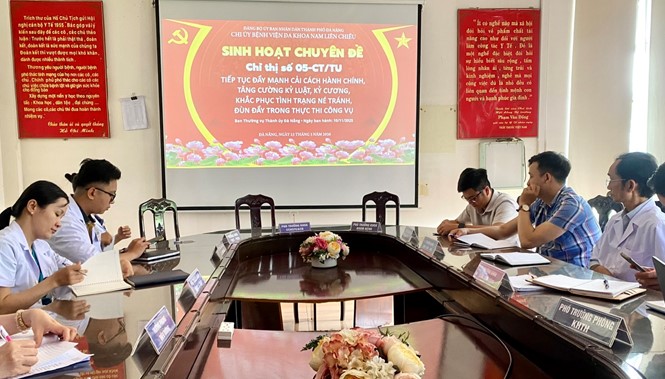 Sáng ngày 23/3/2026, nhằm nâng cao kỷ luật, kỷ cương hành chính và trách nhiệm trong thực thi công vụ, Chi bộ Bệnh viện đa khoa Nam Liên Chiểu đã tổ chức sinh hoạt chuyên đề triển khai Chỉ thị số 05-CT/TU của Ban Thường vụ Thành uỷ Đà Nẵng.