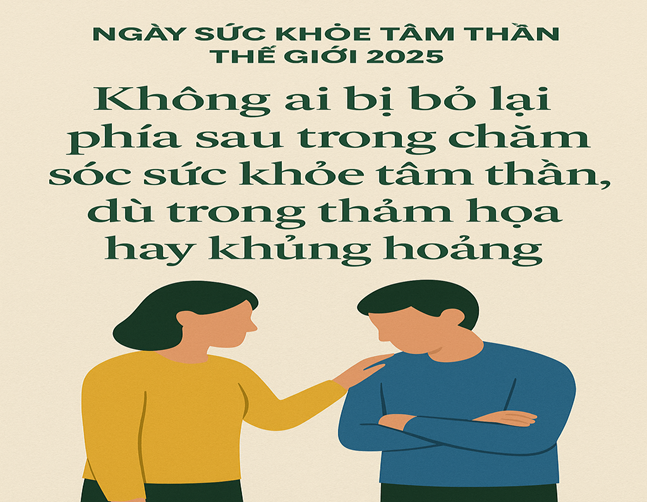 Trong cuộc sống hôm nay, con người không chỉ đối mặt với bệnh tật mà còn với nhiều biến cố khó lường như động đất, lũ lụt, dịch bệnh hay tai nạn khẩn cấp. Những tác động ấy không chỉ ảnh hưởng đến sức khỏe thể chất mà còn gây tổn thương nặng nề về tinh thần. Chính vì vậy, Ngày Sức khỏe Tâm thần Thế giới 10/10 năm nay với chủ đề: “Tiếp cận dịch vụ chăm sóc sức khỏe tâm thần trong thảm họa và tình huống khẩn cấp” như một lời kêu gọi toàn xã hội cùng quan tâm đến việc đảm bảo mọi người đều có thể tiếp cận hỗ trợ về sức khỏe tinh thần trong mọi hoàn cảnh, đặc biệt là khi khủng hoảng xảy ra.